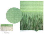収穫したイグサを染土(せんど)という泥で、染めます。 イグサの泥染め作業 ・泥染めすると、熱を良く吸収して、乾燥が早くなります。 そうすることにより変色しにくく、つやのある良い畳表になります。 そうしたイグサと経糸で、織機で編んでいます。 この経糸は主に綿糸、ジュート麻、マニラ麻が使われています。 経糸の種類、イグサの種類、長さ、質、イグサの数、織り具合によって等級区分されています。 イグサの数が多くなると表面のキメが細かくなり、目がつまった状態になり,感触が優れ、強度が増します。 畳表は産地によって、広島県は備後表、岡山県は備前、備中表、高知県は土佐表、福岡県は豊前、筑前、筑後表、熊本県は肥後、八代表、大分県は豊後表と呼ばれています。 中国で生産、製造して輸入されるものもあります。 特に、備後表は高級品として使われています。 | ||||||||||||||||||